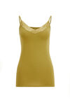 Omarm het ultieme comfort in stijl. Dit nauwsluitende singlet van jersey-kwaliteit met stretch biedt een vleugje luxe met een kanten V-hals en verstelbare spaghettibandjes. Elke outfit wordt afgemaakt met deze elegante touch-up.