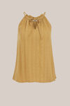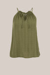 Luchtig, vrouwelijk en makkelijk te combineren. Dit singlet heeft een regular fit met een ronde, geplooide hals aan de voor- en achterkant. De V-opening met strikbare touwtjes geeft een leuk detail. De stof valt soepel en heeft een fijne reliëfstructuur. Mooi als set met de bijpassende maxi-rok.