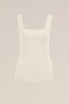 Ervaar stijlvol comfort met dit singlet van een viscosemix met een ribstructuur. Het nauwsluitende, stretchy ontwerp omhelst jouw vorm, en de moderne vierkante halslijn voegt een speelse touch toe. Door de flatterende voering kleedt dit singlet mooi af.