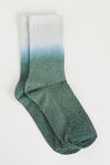 Een paar sokken van een katoenmix met een dip-dye effect en glittergaren.