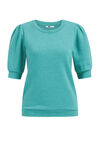 Een regular fit sweater van een katoenmix met een gemêleerde look. Het model heeft een ronde hals en korte pofmouwen.