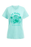 Een regular fit T-shirt van een katoenmix met opdruk en pailletten. Het model heeft een ronde hals en korte mouwen.