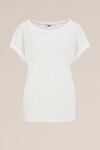Voor een subtiele twist in je garderobe. Dit soepel vallende T-shirt met boothals en korte mouwen heeft een prachtig opengewerkte structuur. Gemaakt voor casual dagen met een chic randje.