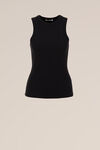Een nauwsluitende tanktop van een katoenmix met ribstructuur. Het model heeft een ronde hals.