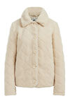 Een korte jas van teddy kwaliteit met een knoopsluiting, een klassieke kraag en twee steekzakken. Gevoerd.