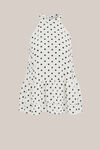 Stippen doen het altijd goed. Deze haltertop is uitgevoerd in een regular fit met een ronde hals en smalle bandjes. Op de rug zit een subtiele knoopsluiting. De top valt soepel langs het lichaam en loopt onderaan uit in een volant voor extra beweging.