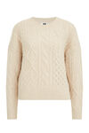 Een regular fit trui van een acrylmix met gebreid kabelstructuur. Het model heeft een ronde hals en lange mouwen met geribde boorden.