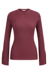 Een regular fit trui van een viscosemix met ribstructuur en sierknopen. Het model heeft een ronde hals en lange trompetmouwen.