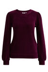 Een relaxed fit sweater van een katoenmix met een ribstructuur en velvet kwaliteit. Het model heeft een ronde hals en lange mouwen.