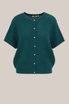Heeft een regular fit, ronde hals, korte mouwen, geheel open en groffe structuur met een gouden knoopsluiting. Van 100% biologisch katoen.
