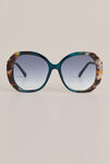 Een UV-bestendige zonnebril van polycorbonaat en metaal met donkere glazen.
