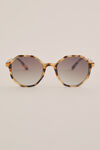 Jouw nieuwe favoriete accessoire. Deze zeshoekige zonnebril heeft een beige-bruin dessin en donkere glazen. Gemaakt van 100% polycarbonaat.