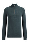Een gebreide regular fit trui van een katoenmix met een ritssluiting. Het model heeft een ronde hals en lange mouwen met geribde boorden.