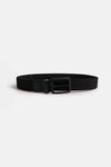 Een riem van gevlochten materiaal met stretch en een mat, metalen gesp.