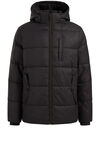 Een gewatteerde parka van polyester met een ritssluiting, twee fleece gevoerde steekzakken met een drukknoopsluiting en een schuine borstzak. Het model heeft een binnenzak, capuchon en lange mouwen met geribde boorden.