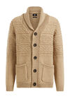 Een regular fit vest van een acrylmix met twee opgestikte zakken en een knoopsluiting. Het grofgebreide model heeft sjaalkraag en lange mouwen.