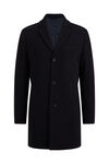 Een jas van gerecycled polyestermix. Deze gevoerde jas heeft een kraag, revers, decoratieve knopen onder aan de mouwen en een split achter. De jas heeft een borstzak, zakken met klep voor en twee binnenzakken.