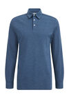 Een slim fit polo van een katoenmix met structuur en knoopsluiting. Het model heeft een polokraag en lange mouwen.
