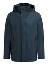 Een korte regenjas van waterafstotend, functioneel materiaal. De jas heeft een afneembare gevoerde capuchon, een ritssluiting met kinbeschermer en een drukknoopsluiting. Het model heeft steekzakken met drukknoopsluiting, raglanmouwen met een verstelbare drukknoop en een split achter. Gevoerd.