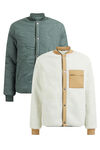 Een gewatteerd pilotenjack met een drukknoopsluiting, twee steekzakken met drukknoop, geribde boord langs de halsopening en onder aan de mouwen. Het jack is aan twee kanten te dragen, een van quilted polyester en de andere kant van zachte teddy kwaliteit met een een zakje met rits. Gevoerd.