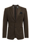 Een slim fit blazer van jersey kwaliteit met een pied-de-poule dessin. Het model heeft opgestikte zakken op het voorpand, een borstzakje - waarvan je de voering als pochet kunt dragen - en twee binnenzakken.