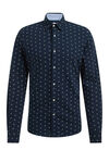 Een slim fit overhemd van jersey-katoen met een dessin en knoopsluiting. Het model heeft een kent-kraag en lange mouwen.