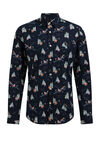 Een slim fit overhemd van een katoenmix met dessin en een knoopsluiting. Het model heeft een kent kraag en lange mouwen.