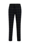 Een slim fit pantalon van stretch-kwaliteit met een dessin, twee steekzakken en twee paspelzakken. Het model heeft smalle pijpen, een haak-, rits- en knoopsluiting.