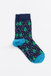Een paar fijngebreide sokken van een katoenmix met comfortabele stretch en een all-over winters dessin. Aan de bovenkant zit een fijngeribde boord.