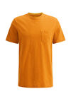 Een regular fit T-shirt van een katoenmix met een fijn streepdessin. Het model heeft een ronde hals, een borstzak en korte mouwen.