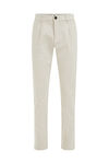 Een tapered fit chino van katoenmix met een streepdessin, twee steekzakken en twee paspelzakken. Het model heeft smalle pijpen en een knoop- en ritssluiting.