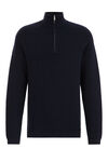 Een regular fit trui van een katoenmix met structuur en korte ritssluiting. Het model heeft een opstaande kraag en lange mouwen.