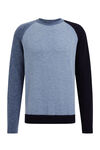 Een regular fit trui van een wolmix met colourblocking. Het model heeft een ronde hals en lange mouwen.