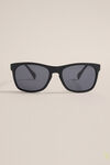 Een UV-bestendige zonnebril van polycarbonaat met donkere glazen.