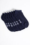 Een set van zeven paar enkelsokken van een katoenmix met een geribde boord.