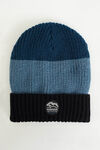 Een gebreide beanie van een acrylmix met een colourblock en een fleecevoering.