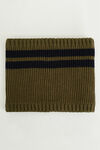 Een gebreide colorblock colsjaal van een acrylmix met een fleecevoering.