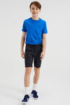 Een gemêleerd slim fit sweatshort van een katoenmix met een elastische taille met aantrekkoordjes, twee steekzakken voor en één steekzak op het achterpand. Het model heeft tapedetails langs de smalle pijpen.