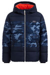 Jongens gewatteerde jas met dessin en tapedetail