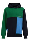 Een regular fit hoodie van een katoenmix met colourblock en fleecevoering. Het model heeft een capuchon en lange mouwen.