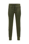 Een regular fit joggingbroek van gerecycled polyester met een ritssluiting met opdruk en een binnenkant van fleece kwaliteit en steekzakken op het voorpand. Het model heeft aantrekkoordjes in de taille en smalle, lange pijpen.