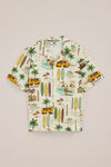Surf's up. Dit overhemd heeft een regular fit met een kraag, korte mouwen en een knoopsluiting voor een relaxte look. De all-over retro print met geeft ’m een opvallende, coole uitstraling. Perfect voor vakantiedagen, feestjes of gewoon voor elke dag.