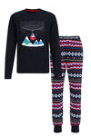 Een regular fit pyjamaset van een katoenmix met een dessin en een opdruk. Het T-shirt heeft een ronde hals en lange mouwen en de broek heeft smalle pijpen.