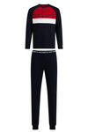 Een regular fit pyjama van een katoenmix met colourblocking. Het T-shirt heeft een ronde hals en lange mouwen. De lange broek heeft smalle pijpen en een elastiek in de taille.