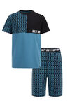 Een regular fit pyjama van katoenmix met een dessin, tapedetail en opdruk. Het model heeft een ronde hals, korte mouwen en smalle pijpen.