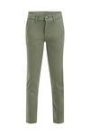 Deze chino is gemaakt van een katoenmix, wat zeer elastisch en zacht aanvoelt. De broek heeft schuin ingezette steekzakken, een paspelzak achter, verstelbaar elastiek in de taille en een gulp met ritssluiting en knoop. Tot maat 128 heeft een haaksluiting.