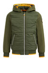 Deze gewatteerde regular fit jas heeft een capuchon met tapedetail en een fleecevoering. Het jack heeft contrasterende mouwen, een ritssluiting met kinbeschermer en twee steekzakken met drukknoop. Aan de lange mouwen zitten geribde boorden, evenals aan de elastische tailleband.