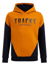 Een regular fit sweater van een katoenmix met een opdruk, colourblock en fleecevoering. Het model heeft een capuchon en lange mouwen met geribde boorden.