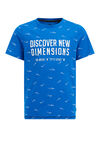 Een regular fit T-shirt van katoen met een dessin en opdruk. Het model heeft een ronde hals en korte mouwen.