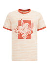 Een regular fit T-shirt van een katoenmix met dessin en opdruk. Het model heeft een ronde hals en korte mouwen met contrasterende mouwen.